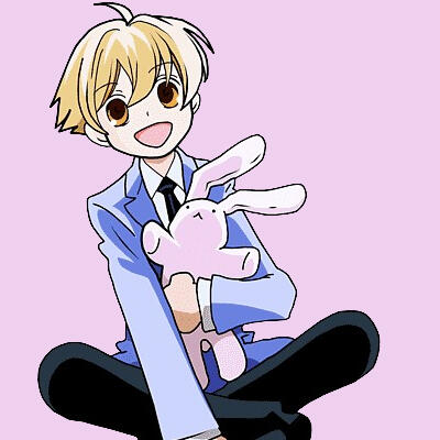 "Although Honey often appears dimwitted, he is actually highly intelligent and clever who is able to see that Tamaki Suoh, Hikaru Hitachiin and Kaoru Hitachiin all have feelings for Haruhi Fujioka. Despite his generally positive nature, he angers easily when awakened from slumber and since his blood-type is AB, most of the hosts believe that he has a split personality (i.e. Dark/Nice Honey). As the oldest person in the club, Honey refers to his fellow hosts using the "-chan" honorific. He also serves as a mentor for the other hosts, especially Kaoru, and is eager to help others find their identity, just as Tamaki helped him find the courage to be his own true self. However, he does not believe in babying people, even Mori, and typically does not offer his advice unless he is approached first. He is adoring of his stuffed bunny, Usa-chan, as it was made just for him by his late grandmother, and he harbors an insatiable appetite for sweets and cake, admitting that he eats three whole cakes for dessert every evening after dinner.